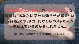 スピリチュアル 『猫が膝の上に乗ってくる』のスピリチュアルな意味を解説。幸運のメッセージを読み解く 猫が膝に乗るとき、スピリチュアル的には「幸運の前兆」と言われています。あなたの日常が幸福に満ちたものになることを暗示しています。そしてあなたがその猫にとって、安心と信頼の場を提供しているということです。 2024.10.22 スピリチュアル