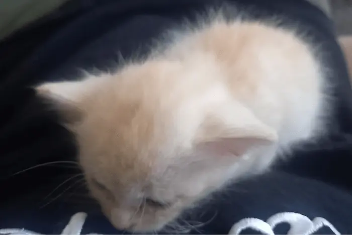 ダンボールに入れられて駐車場に捨てられていた状態で保護され、私のもとにやってきました。クリーム色のトラ猫です。