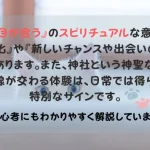 • 小さなYES+夢ログ+ミニ開運アクション(断捨離/玄関浄化/感謝1行)で、スピリチュアルな気づきを実益に着地できる。
