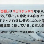 - 出会う場所や時間帯によって白猫のスピリチュアルな意味が変化する。